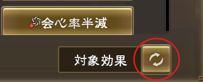 戦法や技能の効果の対象となる状態変化が確認できる「対象効果一覧」において、一覧右下の「対象効果」右のボタンを押し